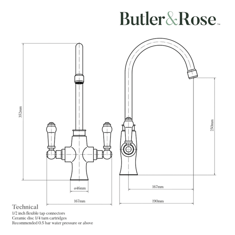 A beautiful traditional-style kitchen deserves a beautiful traditional-style kitchen tap. The Elizabeth is just such a kitchen tap with ceramic lever handles that are operated by a single quarter turn - 90° turns the tap to the fully on position, and 90° back the other way and it is fully off again.